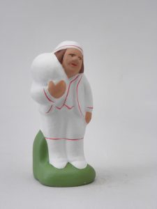 Il est l’un des premiers santons à composer nos crèches. Au départ paria, nomade douteux peu recommandable, il devient formidable et incontournable car c’est à lui qu’est revenu le privilège de recevoir et d’annoncer au peuple la nouvelle de la naissance de l’enfant dieu. La houppelande sur le dos pour le protéger du froid vif de l’hiver, sur les chemins, longs et escarpés, le berger apporte un agneau en offrande au petit.